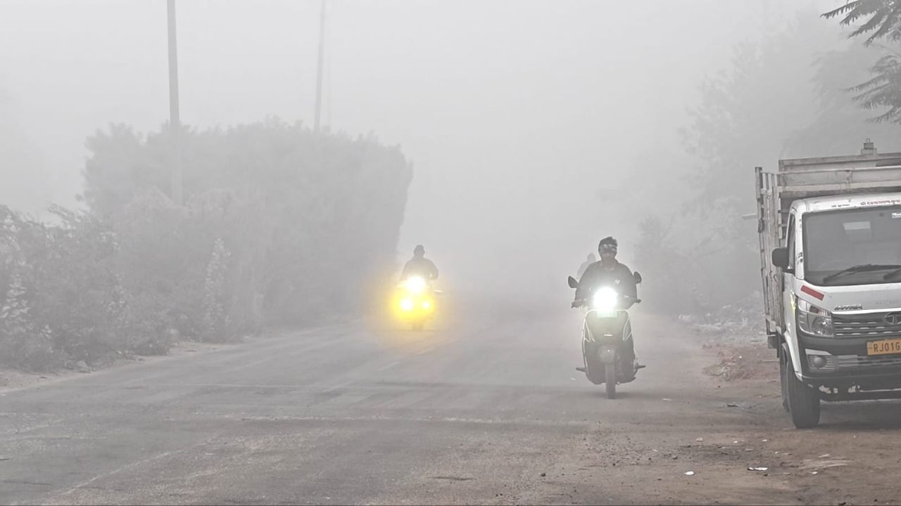 घने कोहरे की चादर में लिपटा भीलवाड़ा, वाहन चालकों की मुश्किलें बढ़ीं . . .
